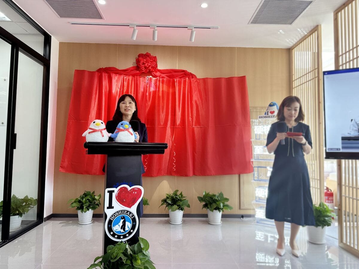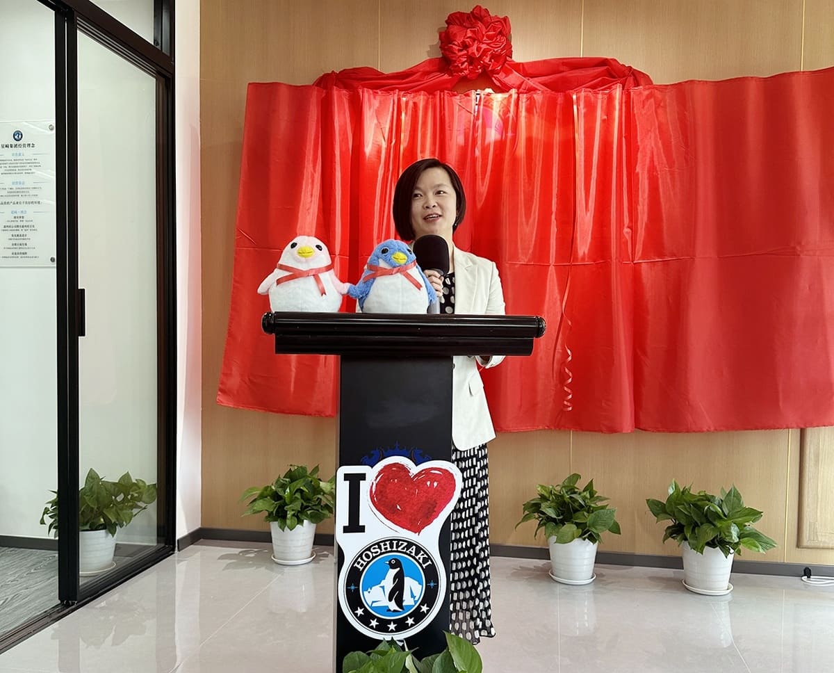 星崎集团董事长小林靖浩先生致开幕词,大连市甘井子区经济发展中心主任徐胜群、区商务局副局长肖莉、辛寨子街道办事处副主任周兴东、日本驻大连领事办事处所长浜田伸子、星崎集团执行董事西口史郎和星崎冷热机械(上海)有限公司董事总经理陈可亮等嘉宾共同出席了此次活动。