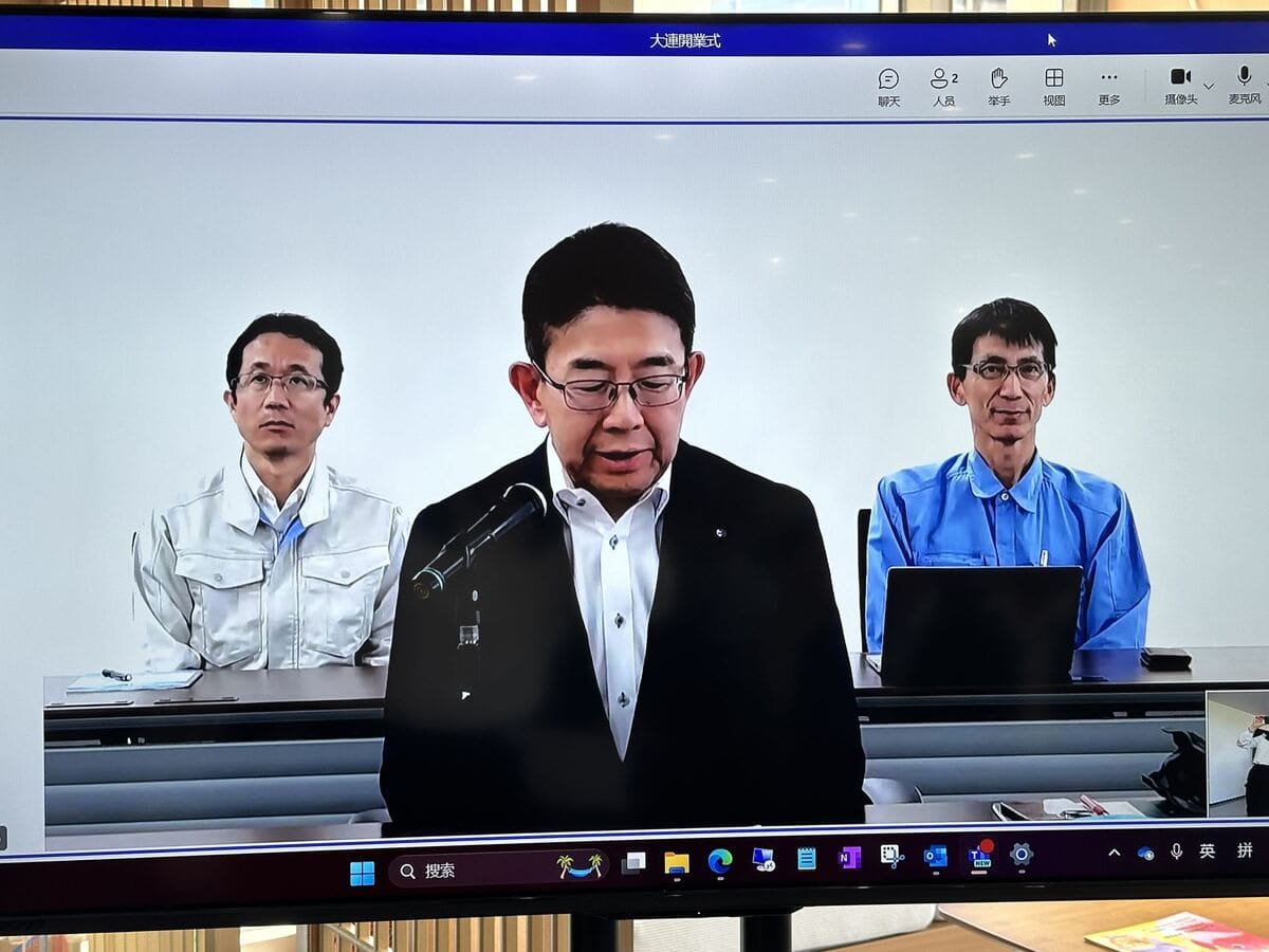 星崎集团董事长小林靖浩(中)远程视讯致辞